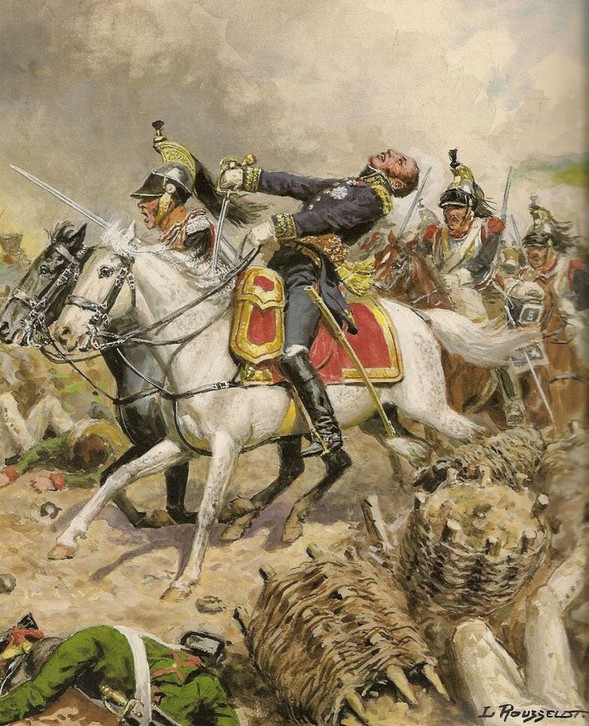 L'Empereur le remplaça par le Général de Caulaincourt. À peine investi de ce commandement, il reçut l'ordre d'attaquer une division russe et de pénétrer dans la grande redoute. Il se mit aussitôt à la tête de la division de Cuirassiers du Général Wathier avant de recevoir une balle en pleine poitrine un peu plus tard en conduisant la charge qui enlève la grande redoute adverse. Il n'avait que 34 ans.