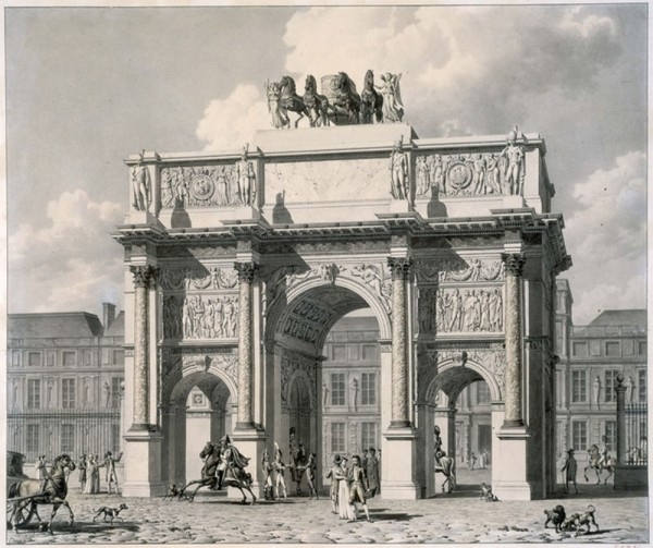 Les chevaux arrivent à Paris en 1798 et seront d'abord placés en 1802 sur les piliers de la grille des Tuileries pour finalement trouver leur place définitive sur l'Arc de triomphe du Carrousel.