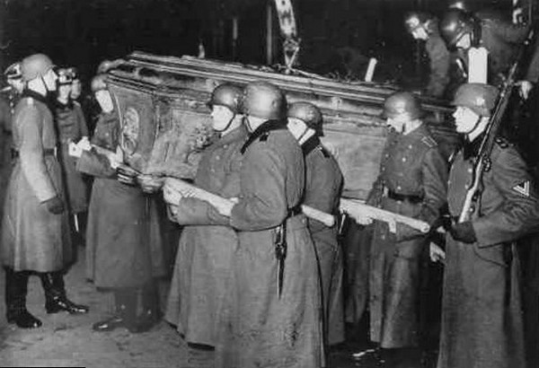 En 1940, dans une France fraîchement occupée par les Nazis, soucieux d'améliorer son image aux yeux des Français, Hitler décida du rapatriement des cendres de l'Aiglon en France. il y arrivera le 14 décembre 1940, soit 100 ans jour pour jour après son père.